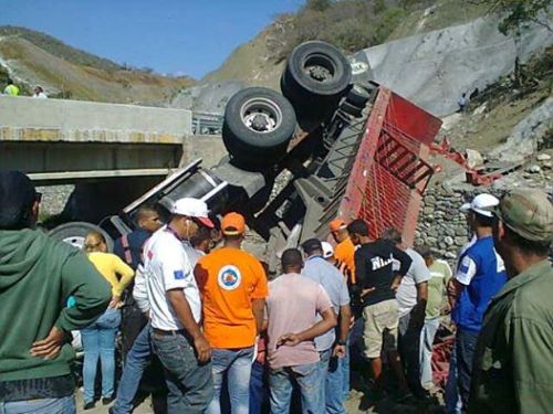 Un aparatoso accidente ocurrió la mañana de este viernes con saldo de un muerto en la carretera Ocoa-Cruce de Ocoa cuando una patana de la compañía distribuidora de refrescos COCA COLA se volcó cayendo al vacío en la cabecera del puente Las caobas, ubicado en el Km 16.